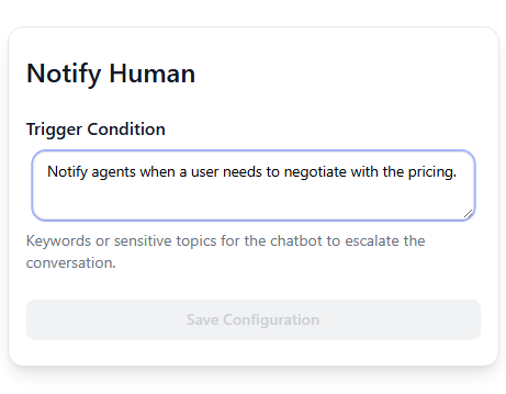 When a human needs to take over, AskYura passes every message and collected field to the agent. No repeated questions, no lost details, just a smooth transition that keeps conversations moving.