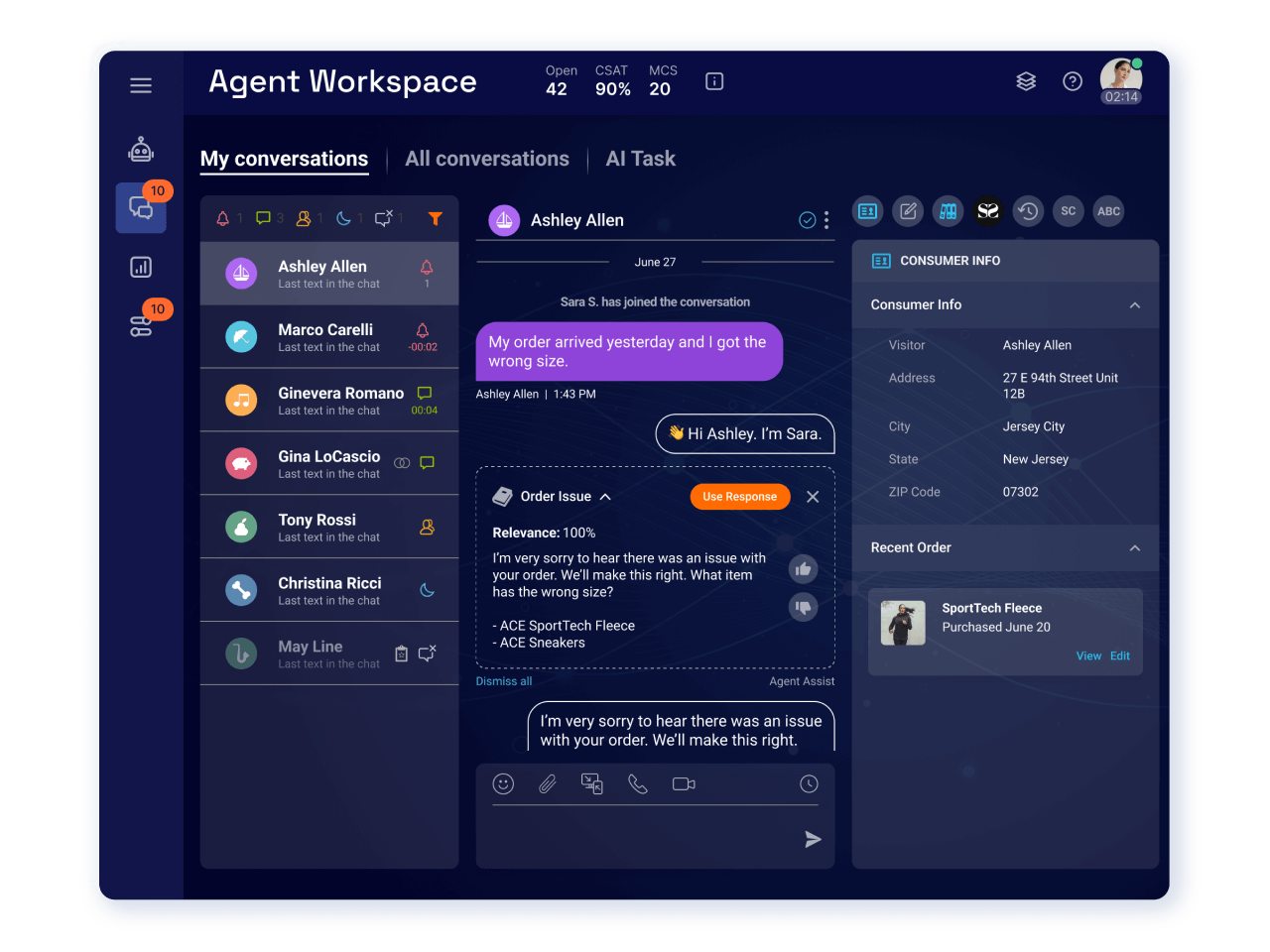 Agents see past interactions, open issues, and customer details from any channel, helping them deliver more personal customer service at scale.